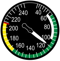 Det enkelte fly har nogle farvermarkeringer i fartmåleren.