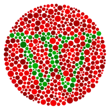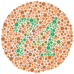 Rød/grøn-farveblindhed måles ved en Ishihara-farvesynstest.