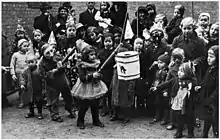 Udklædte børn slår katten af tønden, Danmark i 1937.