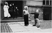Udklædte børn med raslebøsser. Danmark i 1930'erne.