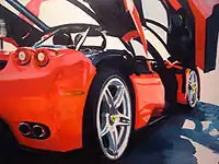 Op imod 90 procent af Ferraris nyere biler sælges som røde (rosso corsa = Italiens officielle racer farve), men gul er også en fremtrædende farve hos bilmærket, jævnfør den sorte stejlende hingst på en gul baggrund, der har sin oprindelse i at gul symboliserer byen Modena hvor Ferrari startede sit motorsport team.[4]