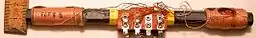 Billede af ferritantenne til langbølgebåndet og mellembølgebåndet med ferritstaven. Højre spole er krydsviklet.