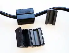 Ferritkerner beregnet til at blive klipset på et elektrisk kabel eller elektrisk ledning.