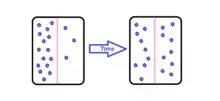 hvor er diffusionskoefficienten, der beskriver, hvor let partiklerne bevæger sig. Hvis koncentrationen er faldende langs med retningen , vil der altså være en flux af partikler i samme retning for at opveje dette. Med tiden bliver koncentrationen derved den samme overalt. Da antallet af partikler er bevaret, skal ændringen over tid modsvares af fluxet. Dette forhold beskrives af kontinuitetsligningen: