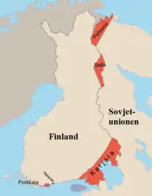 Traktaterne, der blev undertegnet med Sovjetunionen i 1947 og 1948, indeholdt forpligtelser, begrænsninger og skadesudbedringer for Finland foruden flere territoriale afgivelser, som allerede var begyndt med fredstraktaten i Moskva i 1940. Som et resultat af de to krige blev Finland tvunget til at afstå det meste af Karelen, området omkring Salla og Petsamo, hvilket udgjorde omkring ti procent af landets areal og tyve procent af dets industrielle kapacitet, herunder havnene i Vyborg og Liinakhamari – sidstnævnte en isfri havn ved Barentshavet. Næsten hele befolkningen i disse områder, omkring 400.000 mennesker, flygtede efter denne aftale. Finland undgik at blive besat af Sovjetunionen og beholdt sin selvstændighed, men anden verdenskrig kostede landet omkring 93.000 faldne soldater, hvilket i forhold til landets samlede befolkning var det tredjehøjeste under krigen.