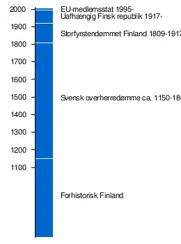 Finlands historie strækker sig fra den tid, hvor det landområde, der nu udgør Finland, først blev beboet og til nutiden. De første spor af mennesker i Finland stammer fra perioden efter den seneste istid omkring 8500 f.Kr. Størstedelen af området var fra det 13. århundrede til 1809 en del af det svenske kongerige, indtil det blev erobret af det russiske kejserrige, som gjorde området til et autonomt storfyrstendømme. Op gennem det 19. århundrede opstod der en stadig stærkere nationalfølelse i Finland med fokus på finske kulturelle traditioner herunder musik og det finske sprog, der fremtræder meget anderledes end de store sprog i den del af Europa. Under en voldsom hungersnød i 1860'erne omkom omkring 15 % af landets befolkning, hvilket medførte nedsatte økonomiske krav fra russisk side, men gav også anledning til en udvandringsbølge.