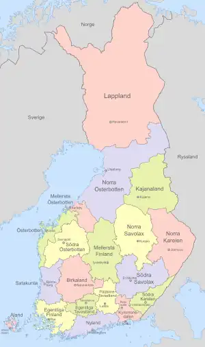 Mellersta Finland Kymmenedalen Lappland Birkaland Österbotten Norra Karelen Norra Österbotten Keski-Suomi Kymenlaakso Lappi Pirkanmaa Pohjanmaa Pohjois-Karjala Pohjois-Pohjanmaa