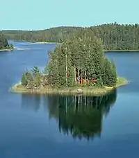Sølandskabet fortsætter mod øst og strækker sig ind i Rusland (Karelske næs og Republikken Karelija).