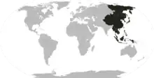 Verdenskort, hvor Fjernøsten er markeret med blåt.