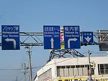 Skilte i det nordlige Japan på japansk, russisk og engelsk
