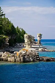 Flowerpot Island er en populær turistdestination, med campingfaciliteter og vandrestier. Øen kan besøges med både med udgangspunkt i Tobermory på Brucehalvøen.