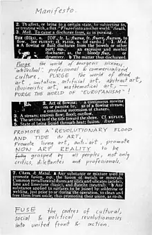 Fluxus er en international anti-kunstbevægelse, der blev navngivet i 1961 af George Maciunas fra Litauen. Bevægelsen udtrykker sig med happenings og Performance. Navne som Yoko Ono, Robin Page, Joseph Beuys, Wolf Vostell, Nam June Paik, Niels Viggo Bentzon og Henning Christiansen er forbundet med bevægelsen.