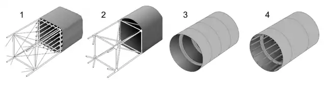 - I et semi-monocoque skrog vil forhudningen typisk være designet til at optage de fleste trækbelastninger, mens longerons og spanter optager trykbelastninger.
