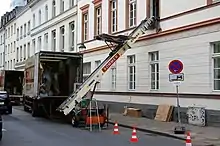 Der findes forskellige former for specialudstyr der kan benyttes i forbindelse med en flytning. Det kan f.eks. være en møbellift, der kan opstilles ud for en etageopgang, og derved kan flyttegodset køres direkte op til et vindue eller en altan, uden at skulle bæres op igennem opgangen. Denne komme især til sin ret ved f.eks. store møbler, der ikke kan komme op igennem en smal opgang, men i stedet kan sendes direkte ind i boligen.[5]