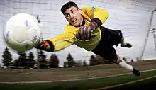 - Hjørnespark: når bolden helt har krydset mållinjen uden at et mål er scoret og sidst er rørt af en fra det forsvarende hold: bolden gives til det angribende hold.[54]