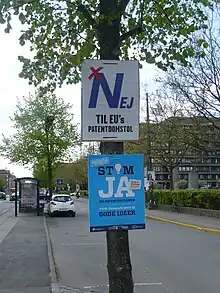 Danmark ville tiltræde patentdomstolsaftalen, medmindre et flertal stemte imod, og at dette flertal udgjorde mindst 30 procent af alle stemmeberettigede.[1][2]