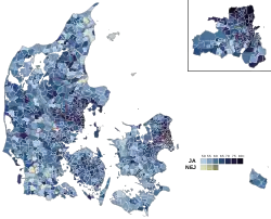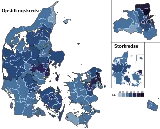 | Nordsjælland[45] | 172.177 | 71,8 % | 67.611 | 28,2 % |