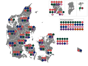 ![]() Mandaternes fordeling efter amts- og storkredse | |||||||||||||||||||||||||||||||||||||||||||||||||||||||||||||