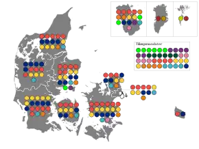 | Landsdel Sjælland-Syddanmark | 26,6 % | 3,2 % | 2,8 % | 3,7 % | 6,7 % | 0,6 % | 25,6 % | 20,6 % | 6,6 % | 3,4 % | 0,0 % |