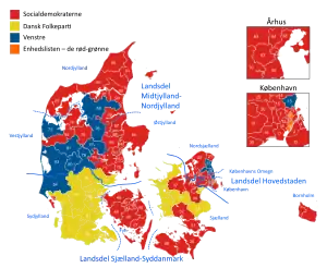 I alle tre landsdele blev Socialdemokraterne det største parti.