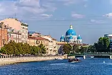 Udsigt over Fontanka-floden med Treenighedskatedralen i baggrunden.