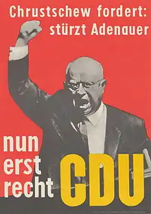 CDU-plakat før valget. »Krustsjov kræver: Vælt Adenauer. Nu mere end nogensinde CDU«