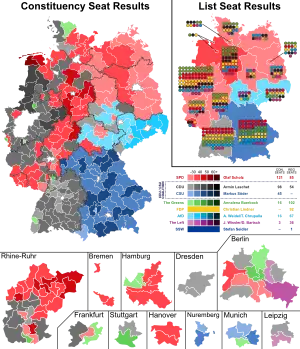 - "Linke verfehlt fünf Prozent erhählt aber 39 Mandate" (tysk). 27. september 2021. Hentet 21. september 2021.