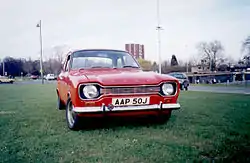 Den første generation af Escort rullede ud af fabrikken i Storbritannien i 1967 og fik øgenavnet "dog bone" ("kødbenet")[2] på grund af kølergrillens karakteristiske form. Mk I, hvilket var det officielle navn, blev bygget frem til modelåret 1974.