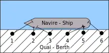 På kajen har en del havne nedstøbte ringe hvor trosserne fastgøres ved hjælp af terse (træ- eller jernbærepinde).