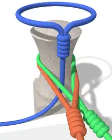 Fortøjninger har ofte et fast øje, som lægges over pullerten på kajen. Når flere skibe fortøjer til samme pullert, er det vigtigt, at de alle kan frigøre sig ved afsejling uden at påvirke de andres fortøjning. Derfor skal fortøjningstrossen eller -rebet føres nedefra og op igennem øjerne på de allerede placerede fortøjninger inden øjet lægges over pullerten som vist på illustrationen.