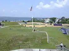 Over fortet vajer et amerikansk flag med 15 stjerner og 15 striber. Dette flag er identisk med det, der vajede efter genopbygningen i 1809. Dengang bestod USA af 15 stater; de 13 oprindelige kolonier, der havde løsrevet sig, samt de to nye stater Vermont (1791) og Kentucky (1792). På toppen af en af voldene ligger en af de bygninger, der blev opført under 2. verdenskrig. Fra en signalmast på bygningen flages stadig med signalflagene H, E, C og P der står for Harbor Entry Control Post.
