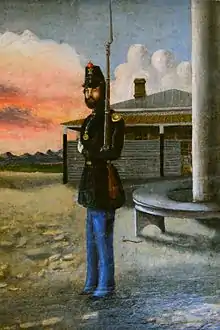 Amerikansk soldat holder vagt ved Fort Yuma, 1858, ukendt kunstner