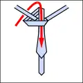 Ved brug af notationen fra The 85 Ways to Tie a Tie af Thomas Fink og Yong Mao bindes four-in-hand således: