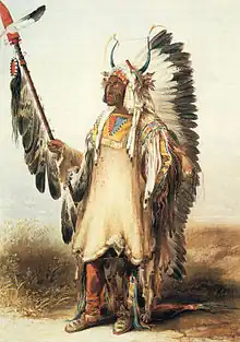 Catlin sikrede sig høvdingens bemalede skindskjorte i 1832, som findes på U. S. National Museum.[13]