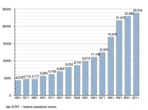 Byens befolkningstal er vokset støt gennem årene, specielt i 1970'erne og 1980'erne.