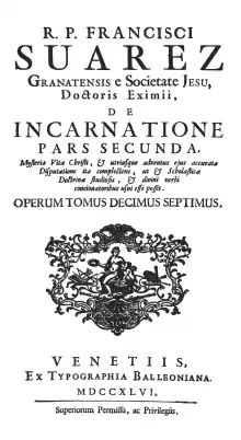 6. Pérez Goyena, Antonio. "Francisco Suárez". The Catholic Encyclopedia. New York: Robert Appleton Company, 1912. Arkiveret fra originalen 17. oktober 2012. Hentet 20. september 2012.]