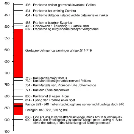 - Mersen-traktaten (870): Efter at alle Lothars sønner var døde, blev det tidligere Mellemrige fordelt mellem Karl den Skaldede og Ludvig den Tyske.