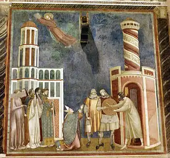 Giotto di Bondone og hans værksted malede i årene 1297-1300 en cyklus af billeder til Frans af Assisis helgenlegende, sådan som den var kendt gennem Thomas af Celanos og Bonaventuras værker.