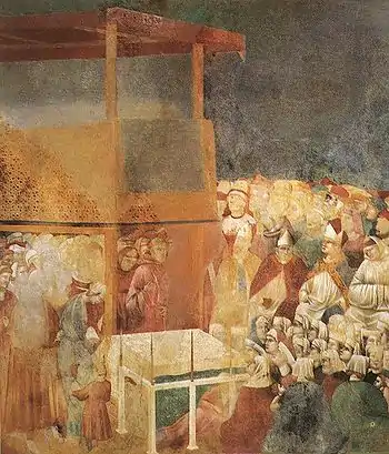 ![]() 17. Frans prædikede for pave Honorius III og hans kardinaler sådan, at det stod klart, at det ikke var ord af menneskelig visdom, men ord inspirerede af Gud. |