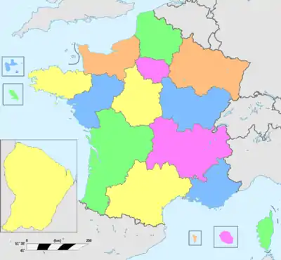 Indtil 1. januar 2016 var de 22 regioner i selve Frankrig inddelt således: