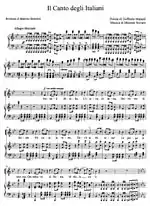 (på italiensk med forskellige opførelser – klik på ascolta l'Inno og vælg en fil for at lytte) - Fratelli d'Italia: Frie noder hos International Music Score Library Project (version for kor og klaver af Claudio Dall'Albero til et musikforslag af Luciano Berio)