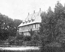 Hovedbygningen er cirka fra 1588. Den er placeret på et dobbelt voldsted og er et godt eksempel på et dobbelthus i bindingsværk fra renæssancen. Dobbelthuset er i slægt med Egeskov Slot, samt det ældste Frederiksborg Slot.
