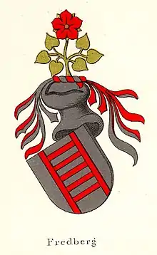 Adelsslægten Fredberg, hvis ætlinge særligt har været knyttet til Himmerland, føres tilbage til herremand (væbner) Christiern Fredberg der adledes i 1484 af kong Hans. med en almindelig stige i våbnet.[4]