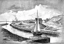 Der var anlagt trækveje på begge sider af kanalen, da sejlskibene ikke kunne manøvrere i den smalle passage.