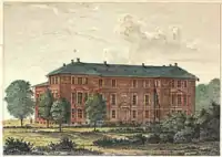 Helbredelsesanstalten for idiotiske, svagsindede og epileptiske Børn blev grundlagt i 1855 og havde oprindeligt til huse i nabobygningen Bakkehuset. Her blev pladsen dog for trang. I den østlige del af haven udstykkedes derfor en grund til en ny bygning, der kunne rumme anstalten. En af datidens fremmeste arkitekter, Ferdinand Meldahl[2] fik opgaven. Bygningen, der er i historicistisk stil inspireret af italiensk renæssance og bygningen blev et af hans hovedværker.