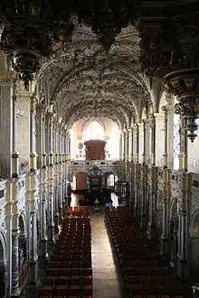 Kirken ligger i vest- eller kirkefløjen af det trefløjede slot. En dobbelt buerække på hver side deler kirken i langskib og to sideskibe. Fra de høje spidsbuede vinduer falder lyset gennem den øverste arkades buer ned i kirken, fuldt belysende hvælvingerne og de afvekslende enkelte og dobbelte, blankpolerede søjler, der bærer de stærkt forgyldte hvælvingsribber. Rummet forneden ligger i dæmpet halvlys; men desbedre virker sølvfigurerne, relieffer og ornamenter på den sorte ibenholts prædikestol og på alteret. Fra de matte sorte tudssten i balustraden over de nederste buer lyser bibelsprog i gylden skrift, og oppe fra den nordre endegavl stråler det store orgels blanke piber og rige farvepragt.