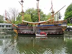 Restauranten blev indrettet med plads til ca. 100 gæster fordelt på to åbne dæk, et nedre dæk og en kaptajnssalon, sidstnævnte behørigt udstyret med mahogni, messing, draperede gardiner og polstrede møbler. Selve skibet blev udstyret med agterspejl, gallerier, skansebeklædning, galionsfigur, 16 skudklare kanoner til salutter, tovværk, tønder og tjære for at gøre illusionen perfekt. Dertil kommer så de 25 meter høje master, der er udhulede til brug for ledninger til lysilluminationer.[13]