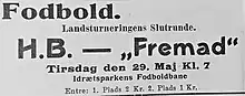{{cite news}}:|issue=har ekstra tekst (hjælp) -  "Overraskelse på Amager : B. 1908 slog Fremad". No. Nr. 209, 1927. København: Dagbladet. 6. august 1927. s. 14, Dagens Sport Nyheder.