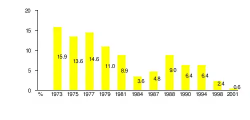| Folketingsvalg | Stemmer | Procent | Mandater |