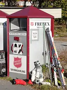 I mange norske byer har Fretex opstillet containere til donation nye eller brugte klæder og sko. Tøjet sælges i Fretex' butikker eller gives bort til trængende.